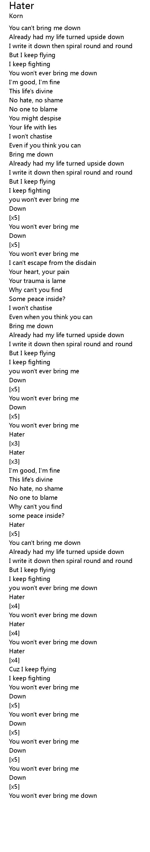 you won't ever bring me down |