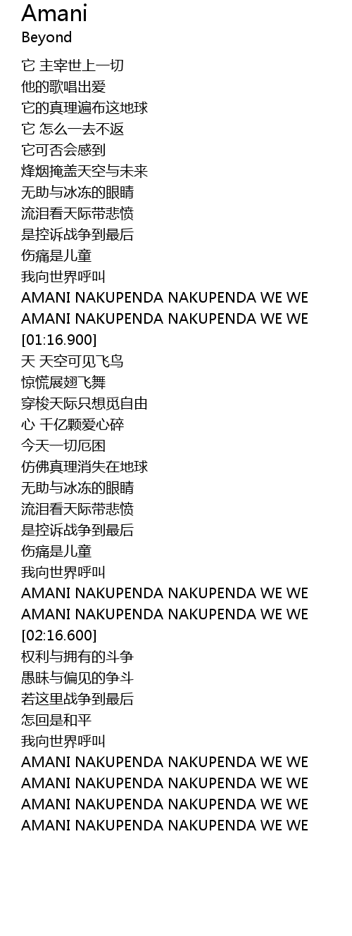 | [03:19.600] | AMANI NAKUPENDA NAKUPENDA WE WE |