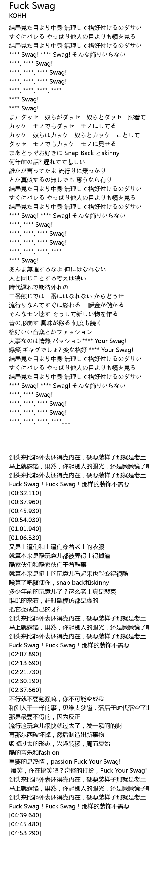| [04:31.350] | Fuck Swag!Fuck Swag!那样的装饰不需要 |