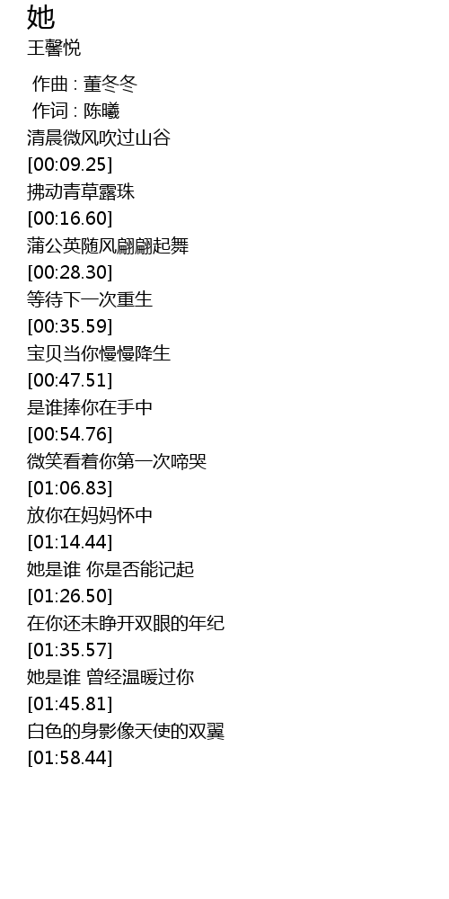 | [01:36.96] | 她是谁 曾经温暖过你 |