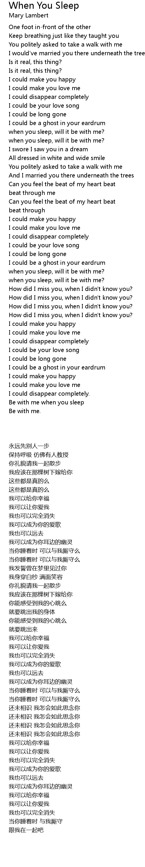 when you sleep, will it be with me? |