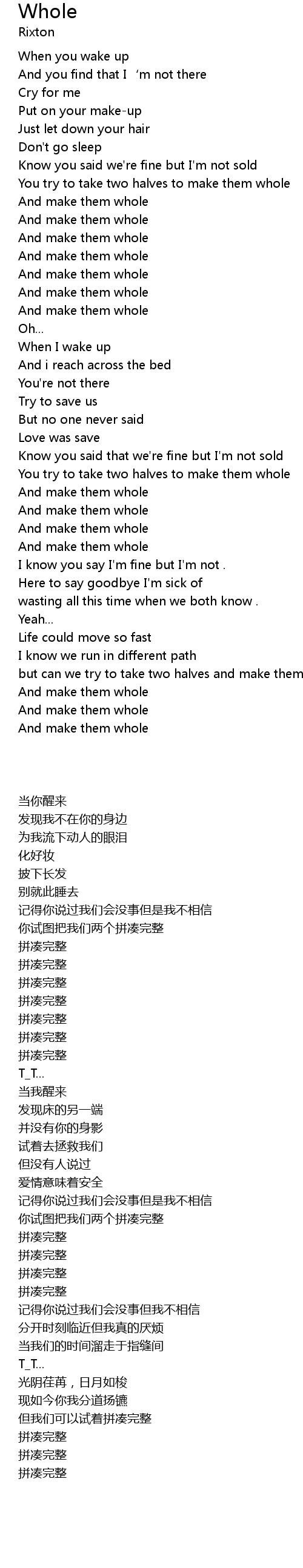 | [01:00.96] | You try to take two halves to make them whole |