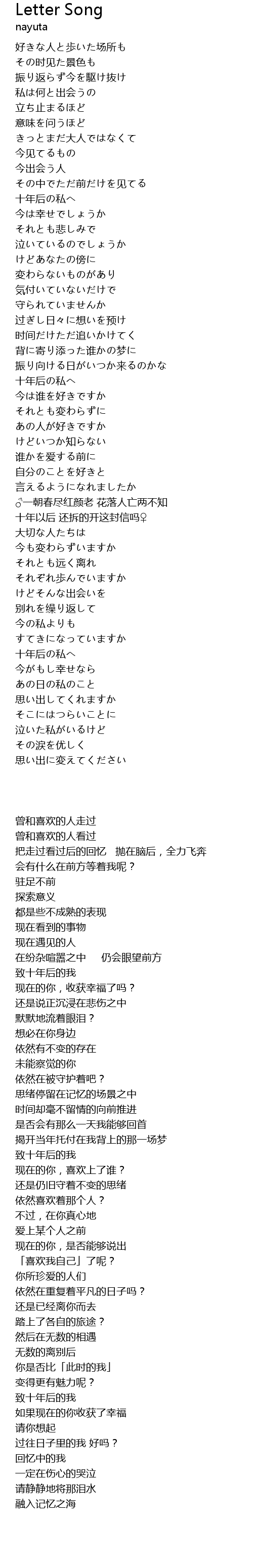 | [03:54.000] | 十年以后 还拆的开这封信吗♀ |