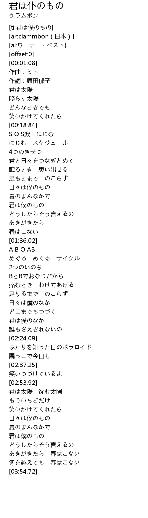 | [03:31.73] | 君は僕のもの |