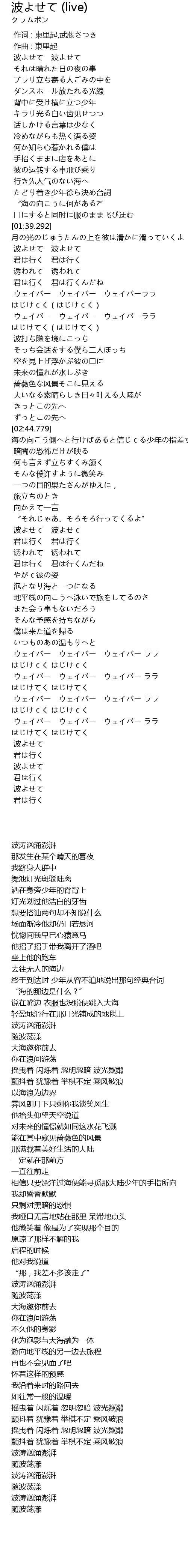 | [02:14.845] | ウェイバー ウェイバー ウェイバーララ はじけてく(はじけてく) |