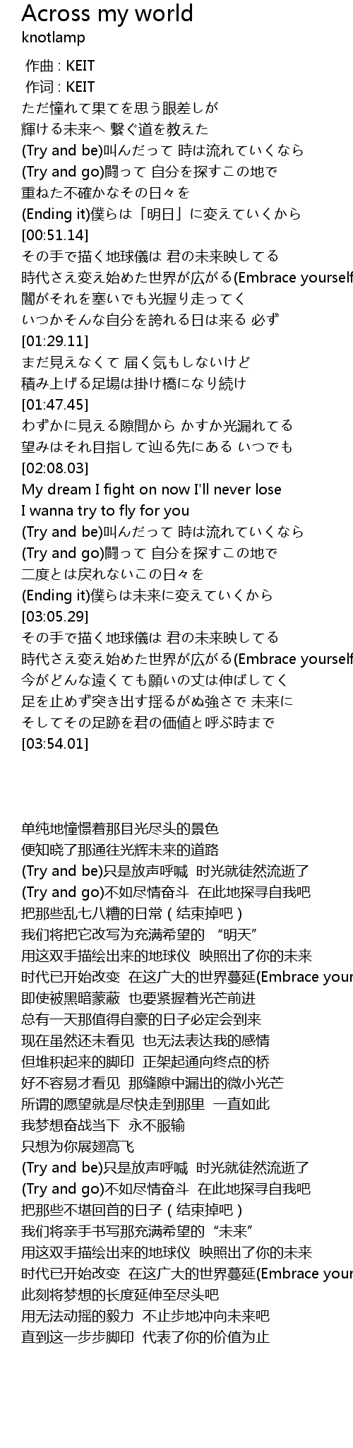 | [00:51.40] | 用这双手描绘出来的地球仪 映照出了你的未来 |
