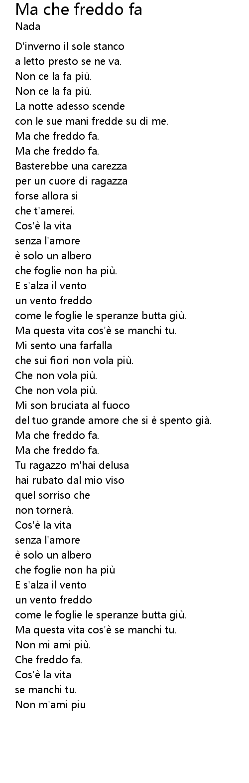 | [00:35.290] | Ma che freddo fa. |