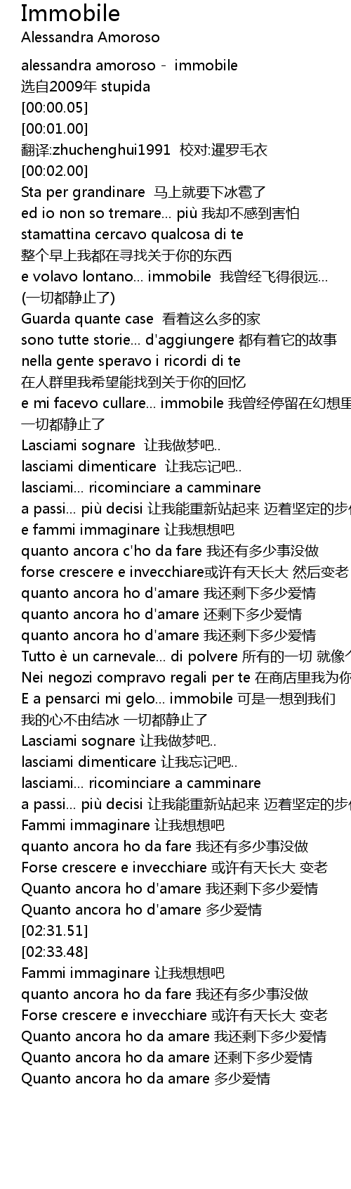 | [02:01.31] | Lasciami sognare 让我做梦吧.. |