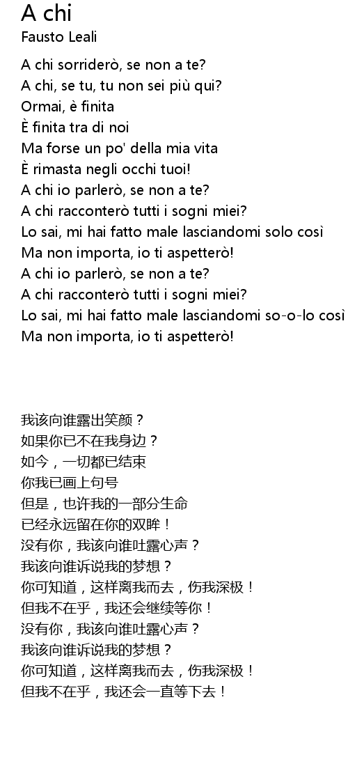 | [00:19.200] | A chi, se tu, tu non sei piu qui? |