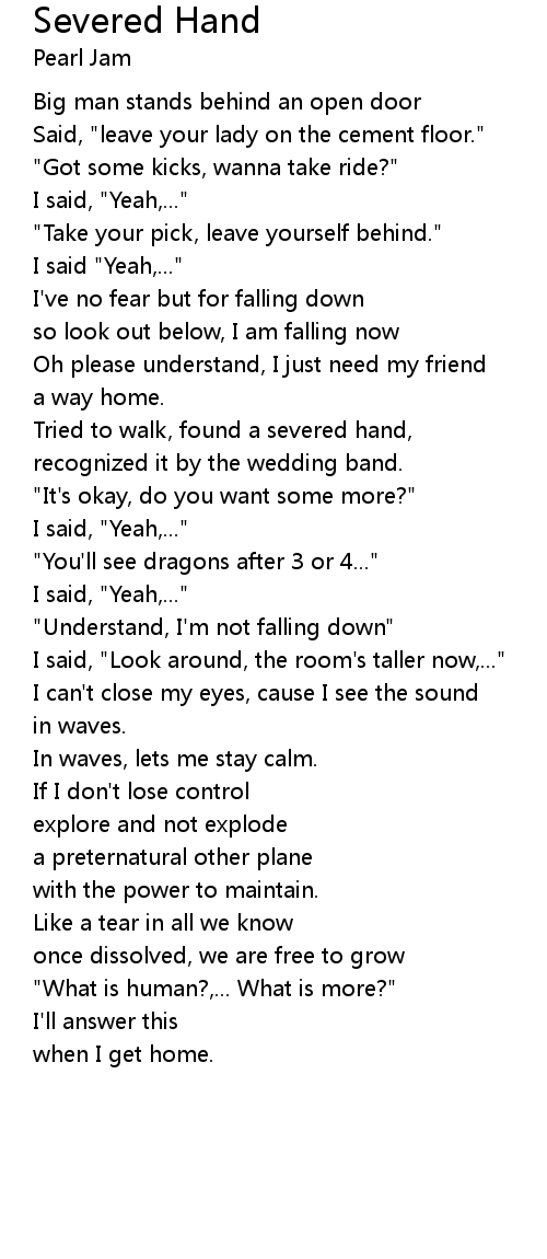 Tried to walk, found a severed hand, |