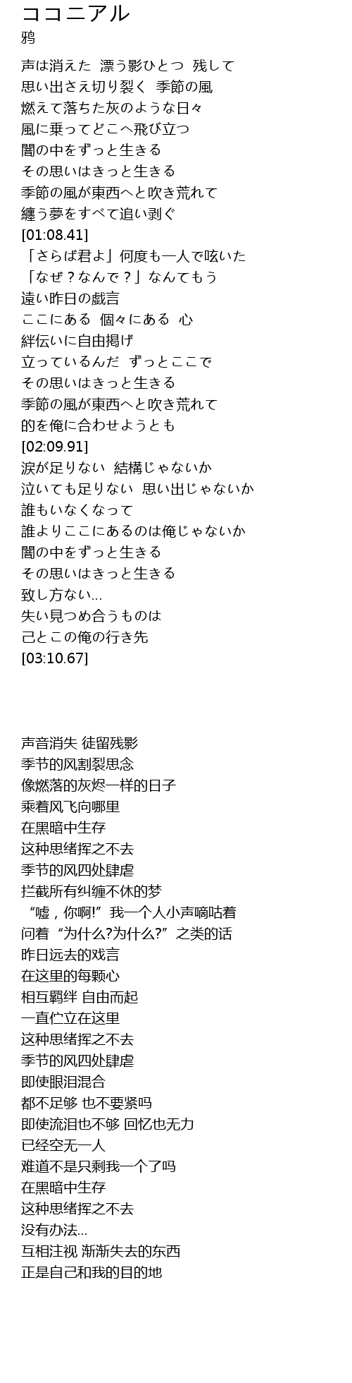 | [00:37.34] | 燃えて落ちた灰のような日々 |