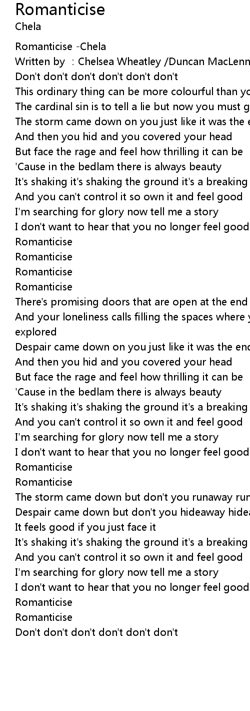 | [00:04.880] | Written by : Chelsea Wheatley Duncan MacLennan |