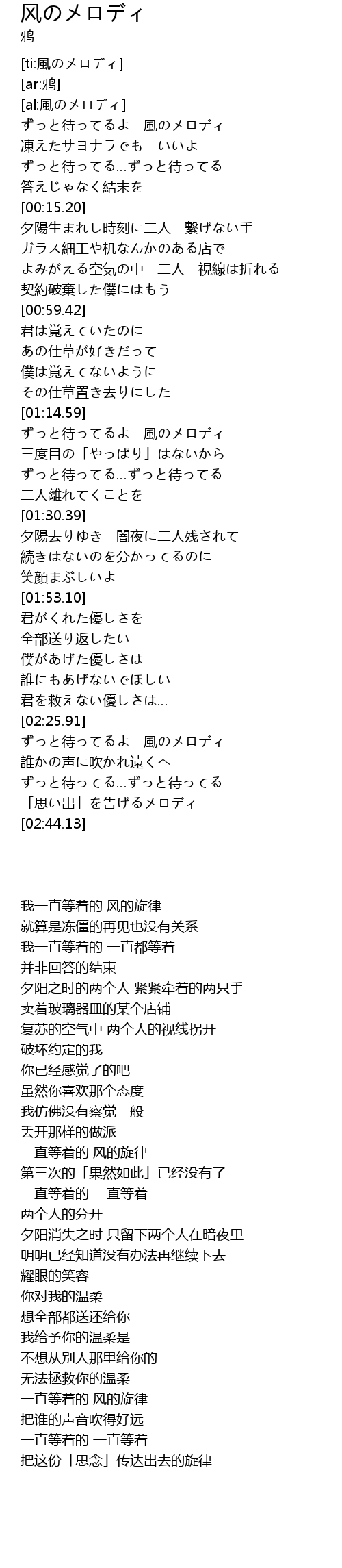 | [02:26.20] | ずっと待ってるよ 風のメロディ |