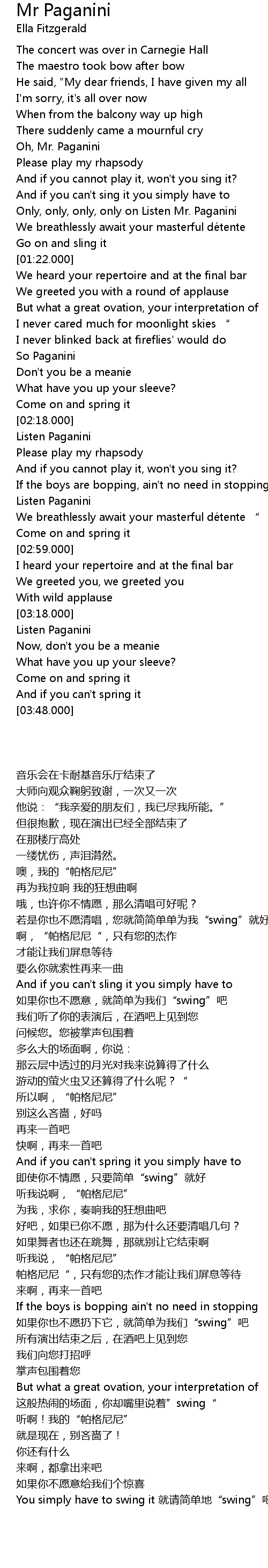 | [01:03.000] | Only, only, only, only on Listen Mr. Paganini |