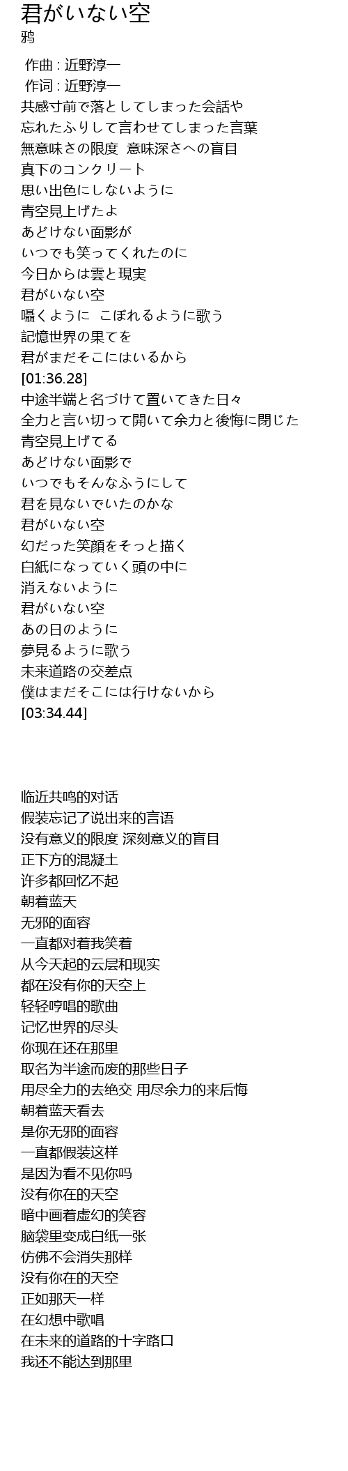 | [03:06.69] | 君がいない空 |