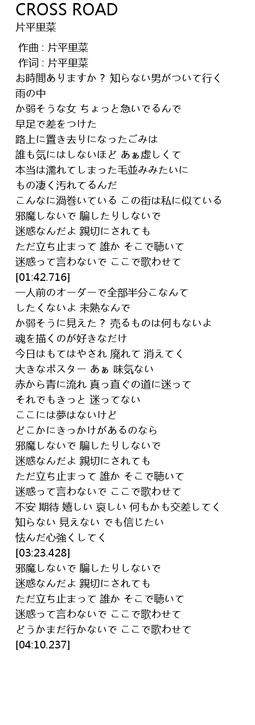 | [02:56.754] | ただ立ち止まって 誰か そこで聴いて |