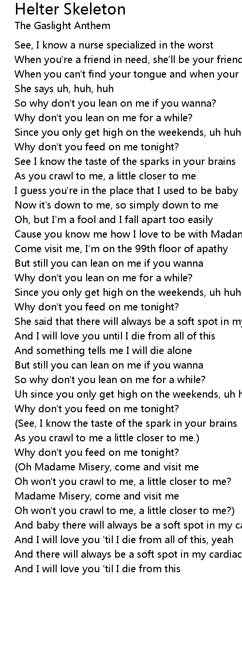 So why don't you lean on me if you wanna? |