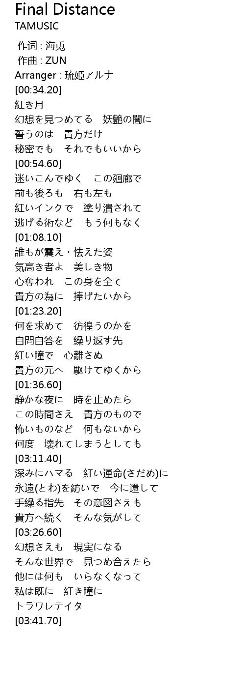 | [00:17.30] | Arranger : 琉姫アルナ |