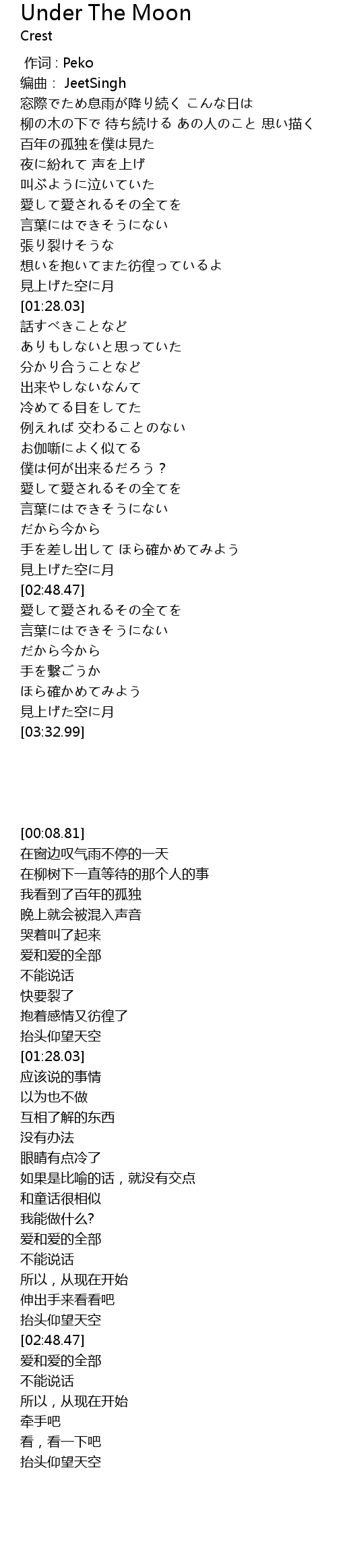 | [00:00.00] | 作词 : Peko |