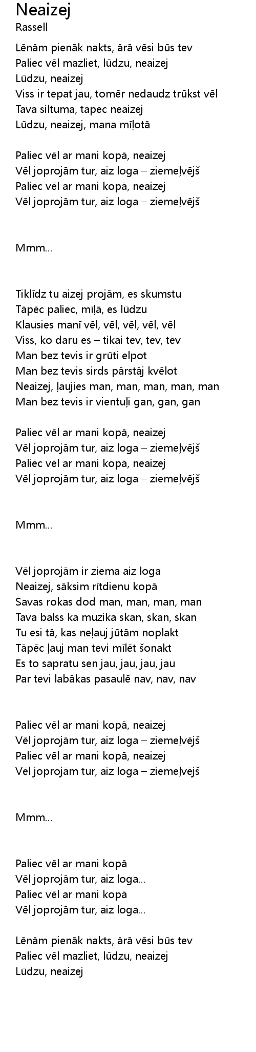 | [01:33.78] | Paliec vēl ar mani kopā, neaizej |