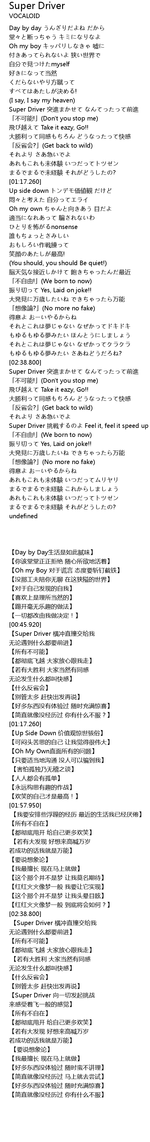 | [00:48.400] | 【Super Driver 横冲直撞交给我 无论遇到什么都要前进】 |