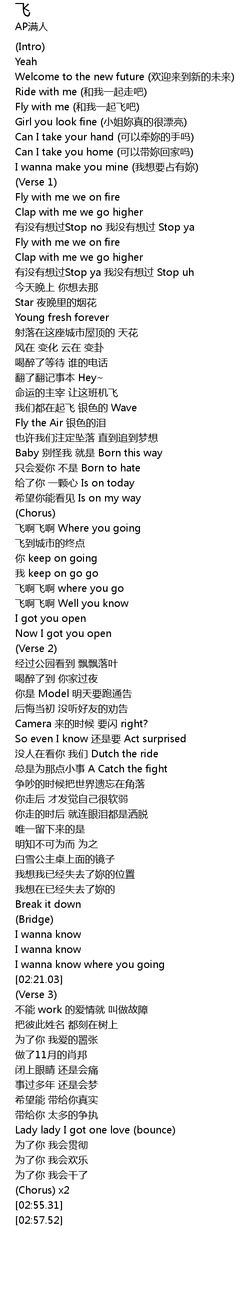 | [01:00.98] | 飞啊飞啊 Where you going |