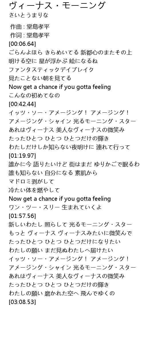 | [00:45.50] | アメージング・シャイン 光るモーニング・スター |