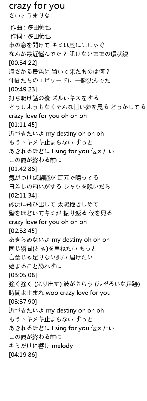 | [03:28.06] | 時間よ止まれ woo crazy love for you |