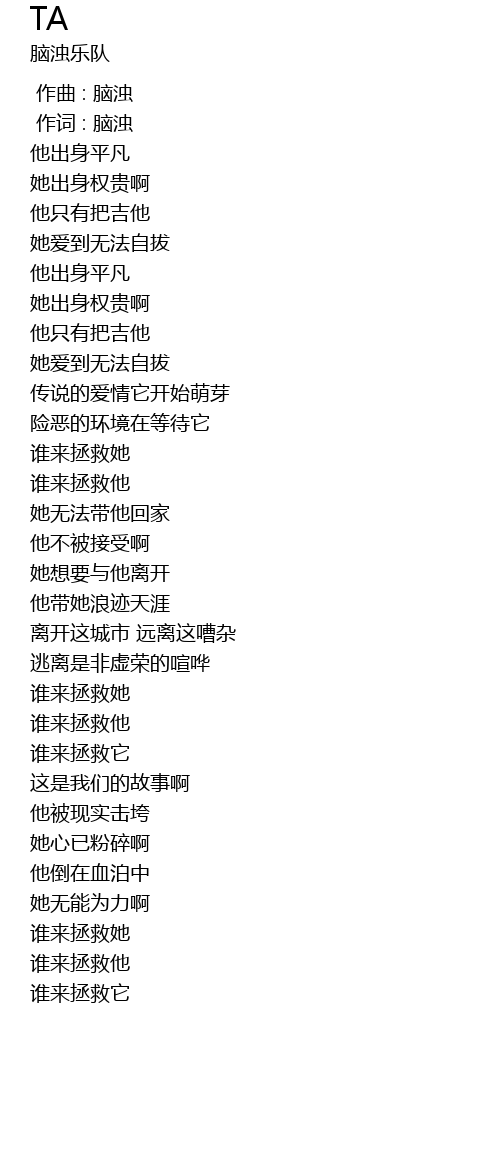 | [00:01.00] | 作词 : 脑浊 |