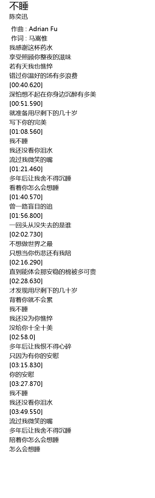| [00:00.00] | zuò qǔ : Adrian Fu |