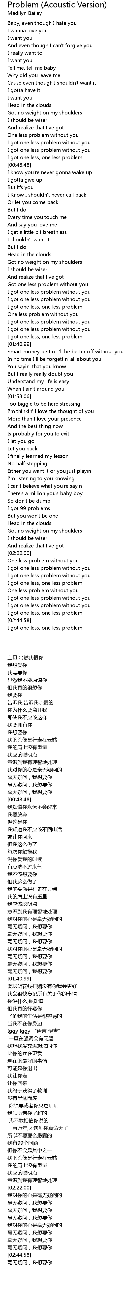 I got one less problem without you |
