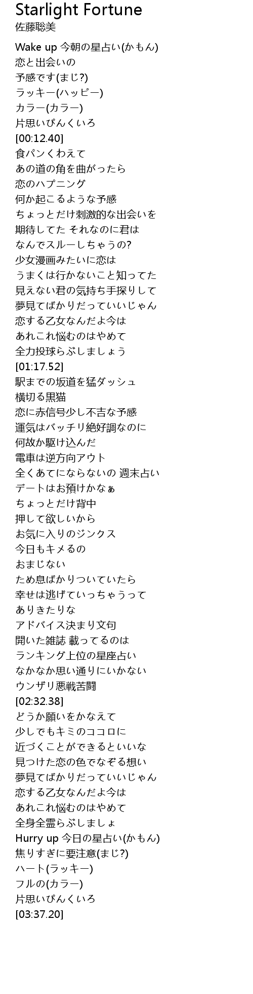 [03:26.29] Hurry up 今日の星占い(かもん)