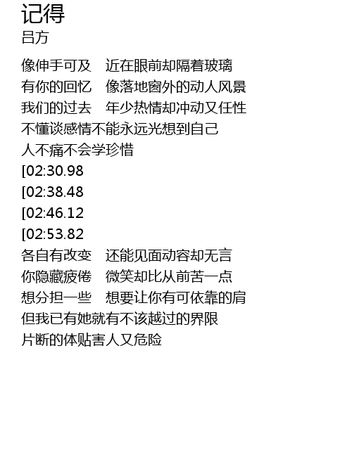 | [03:18.87][02:46.12][01:11.84] | 记得那年 用暂别换更远的明天 |