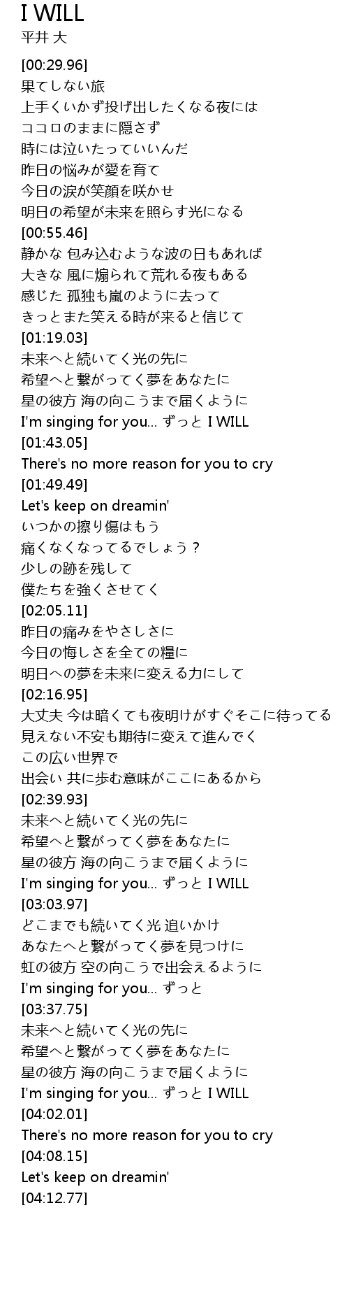 | [02:57.12] | I' m singing for you... I WILL |