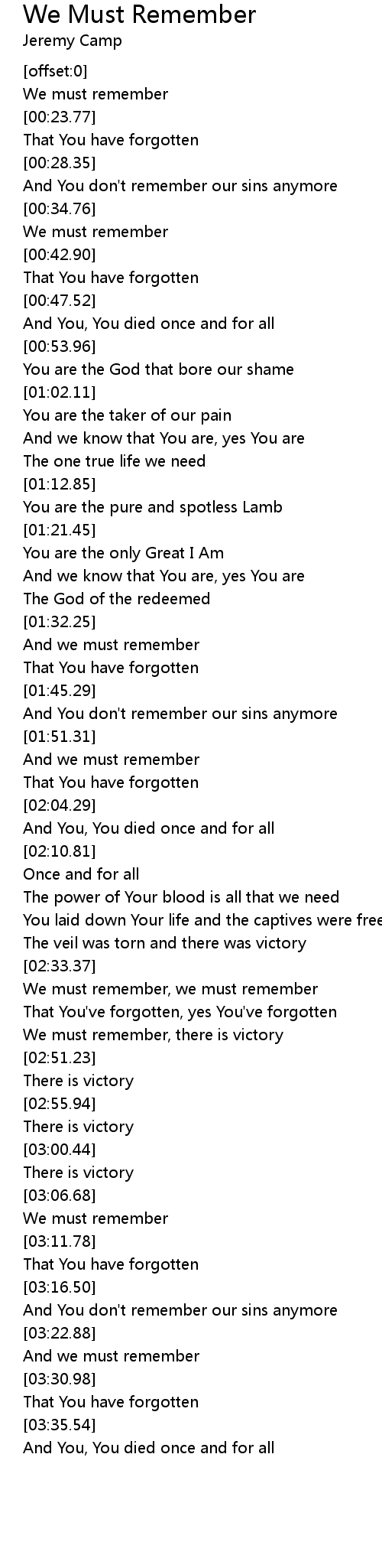 And You don't remember our sins anymore |