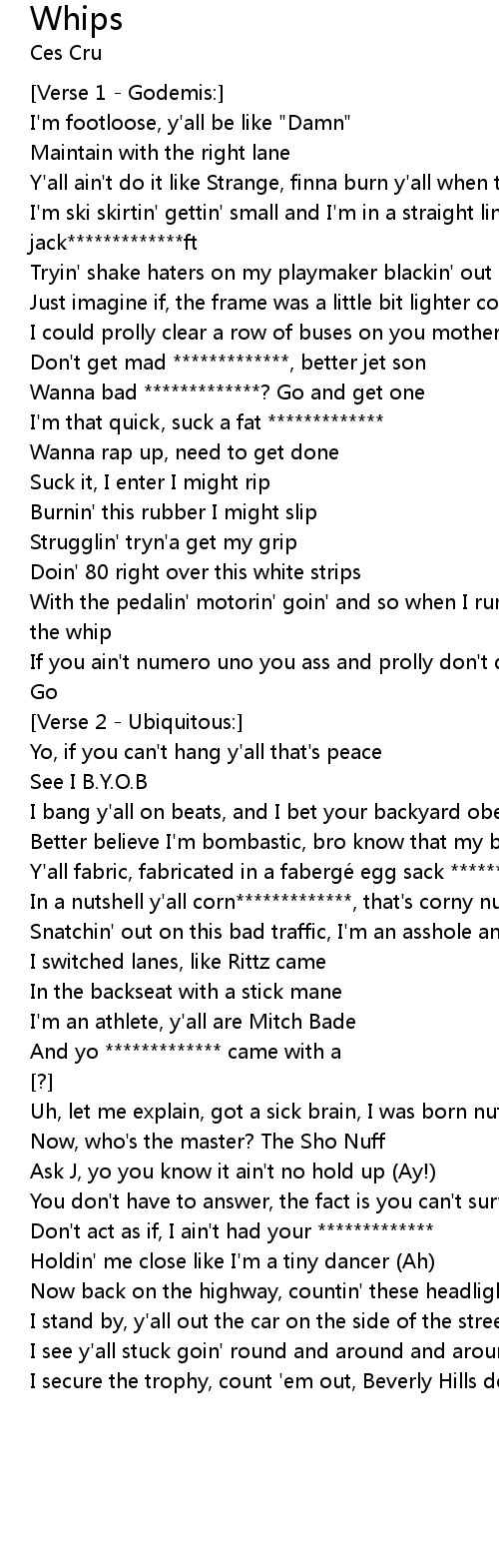 | With the pedalin' motorin' goin' and so when I run it, then I'ma just fly out the whip | |