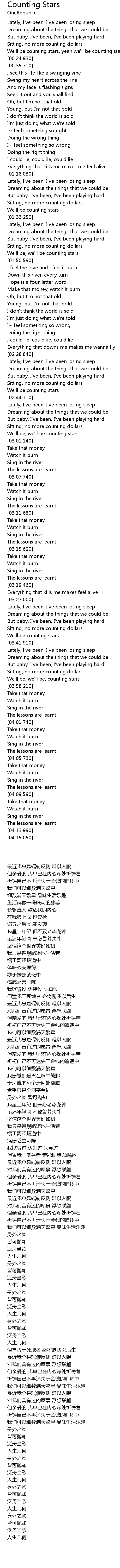 We'll be counting stars, yeah we'll be counting stars |