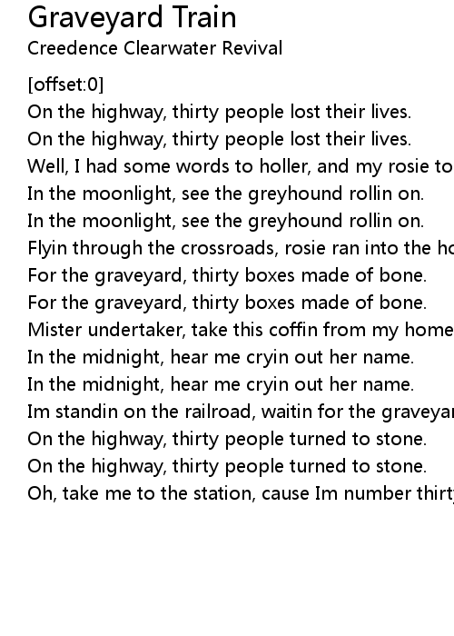 Im standin on the railroad, waitin for the graveyard train. |