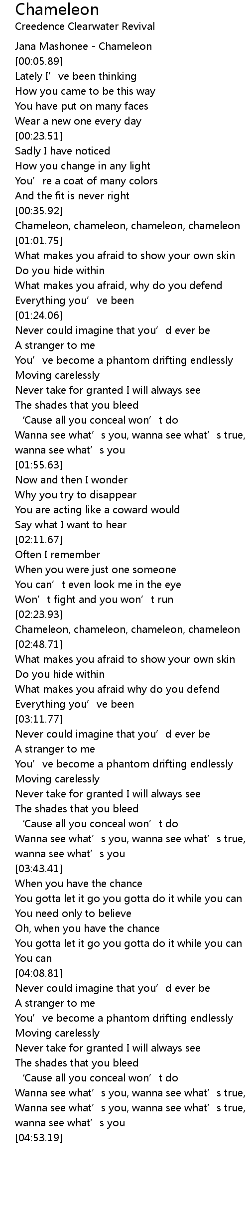 | [02:24.55] | Chameleon, chameleon, chameleon, chameleon |