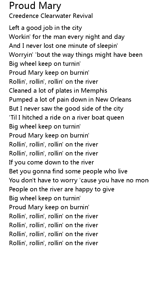 Proud Mary keep on burnin' |