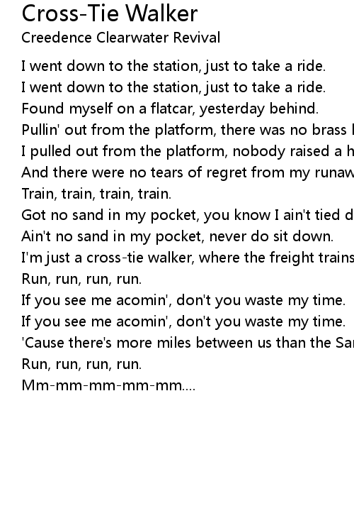 I'm just a cross-tie walker, where the freight trains run. |