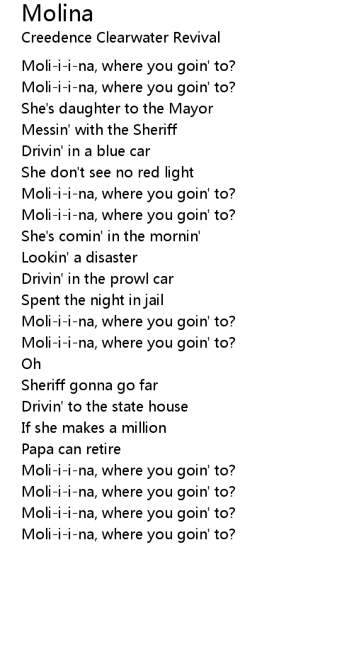 Moli-i-i-na, where you goin' to? |