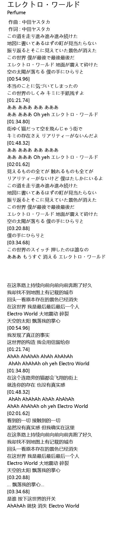 | [01:55.98] | AhAh AhAhAh oh yeh Electro World |