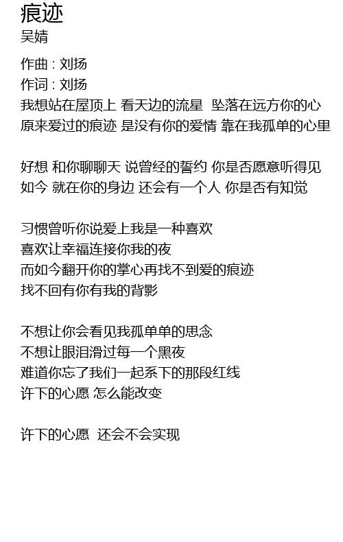 | wǒ xiǎng zhàn zài wū dǐng shàng kàn tiān biān de liú xīng zhuì luò zài yuǎn fāng nǐ de xīn | |
