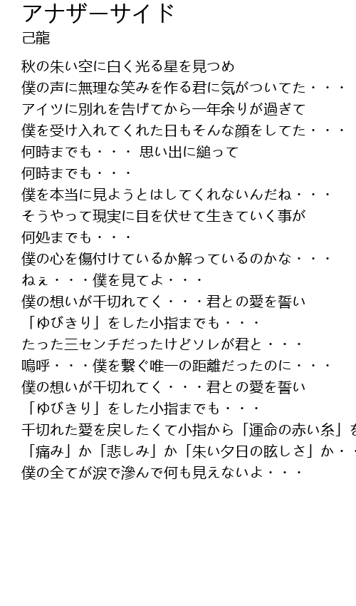 | 千切れた愛を戻したくて小指から「運命の赤い糸」を紡ぎ出してた・・・ | |