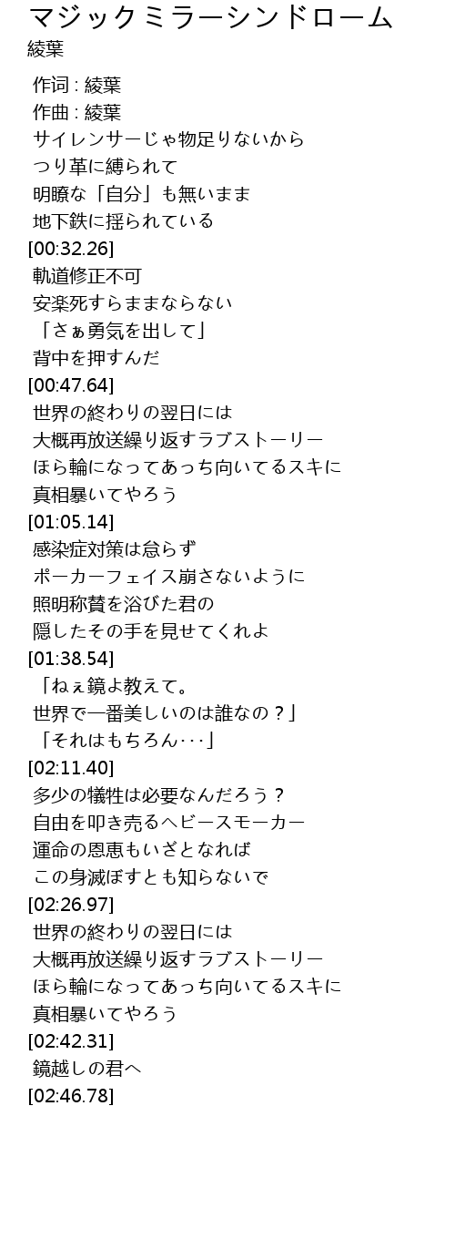| [01:53.54] | 「ねぇ鏡よ教えて。 |