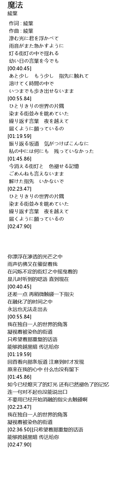 | [00:40.46] | あと少し もう少し 指先に触れて |