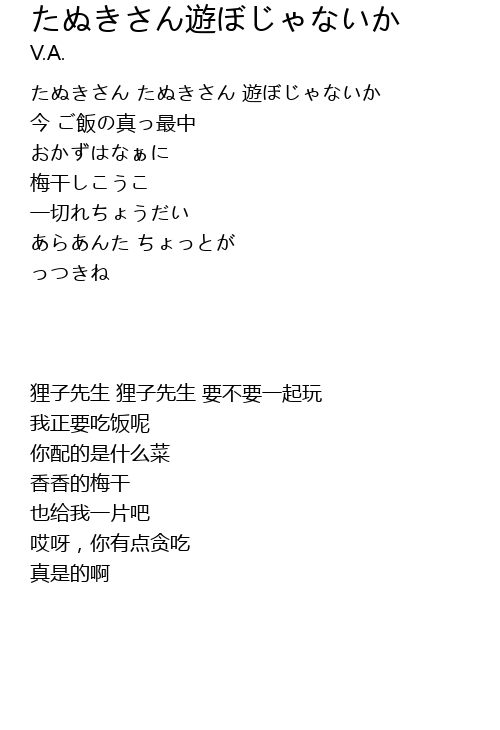 たぬきさん たぬきさん 遊ぼじゃないか |