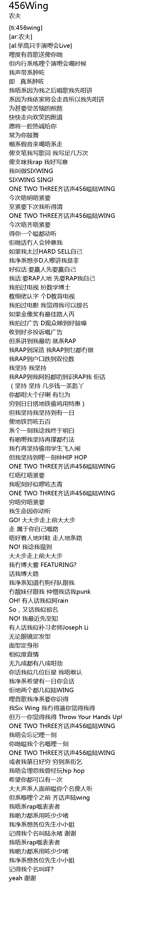 | [03:56.89] | ONE TWO THREE齐话声456嗌陆WING |