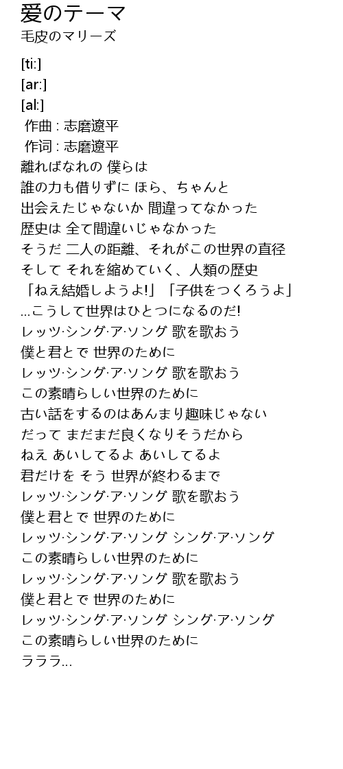 | [02:28.65] | レッツ·シング·ア·ソング 歌を歌おう |